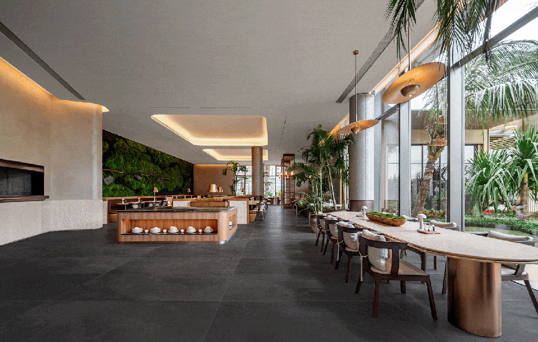 勾勒出奇特的海岛美学意境,这个大堂既是归家的前厅,让每位居者都能正在这里找到完满的落点。
